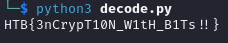HTB{3nCrypT10N_W1tH_B1Ts !! }