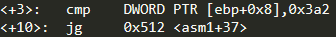 jg means jump if greater. Since we are checking for argument=0x6fa this condition is true and the jump to provided address (line <+37> in our code) is triggered
