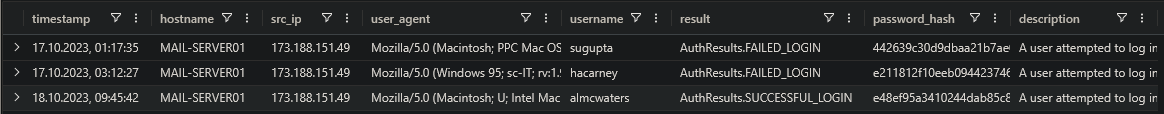 Let’s look back at all AuthenticationEvents. Which user agent was used the most? (Format Firefox/XX.X)
