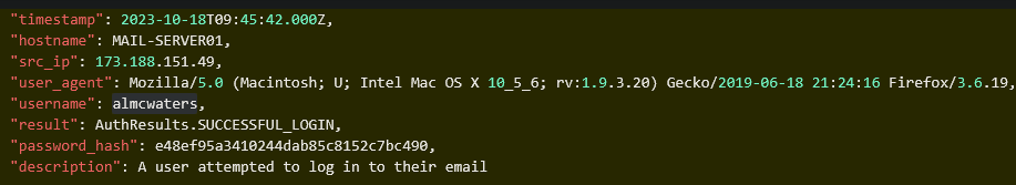 When was there a login attempt from a different user agent for this employee? Copy and paste the exact timestamp