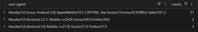| summarize Count=count() by user_agent